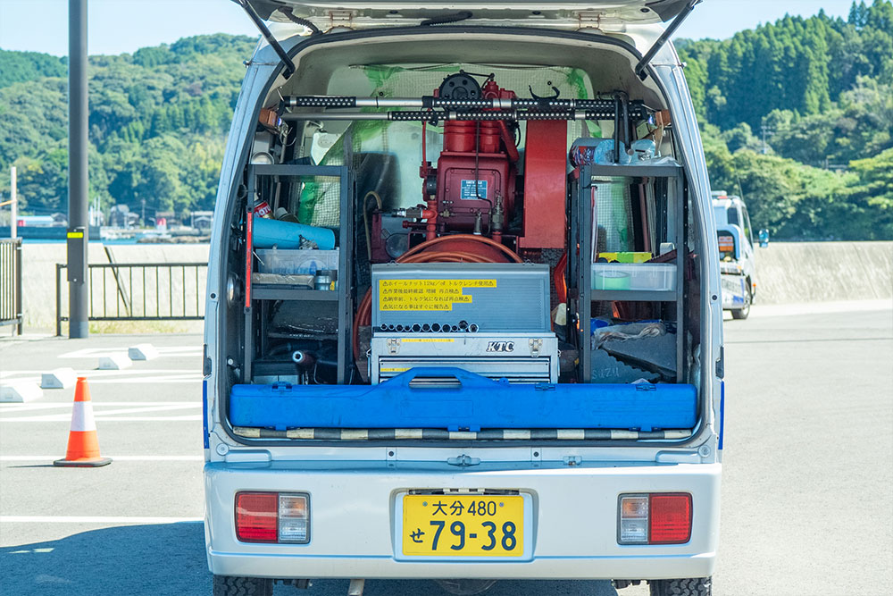 ・GMイチハラ製・タダノZR303クレーン3段・前後ウィンチ・油圧工具一式・3段昇降LED投光機・大型キャッチバング・潜水作業用品一式・4WD